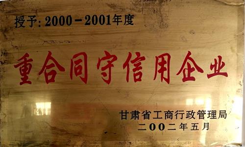 2002年5月公司被甘肅省工商行政管理局授予“重合同守信用企業(yè)”;