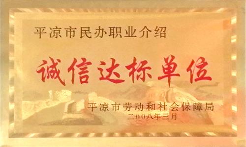 2008年公司職業(yè)介紹所被平?jīng)鍪袆趧?dòng)和社會(huì)保障局評(píng)為“誠(chéng)信達(dá)標(biāo)單位”;
